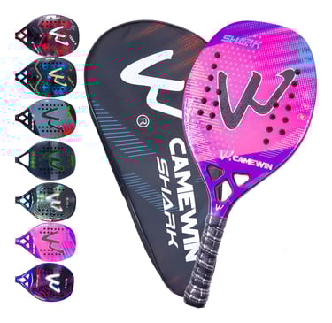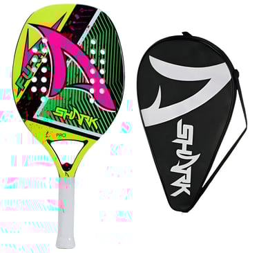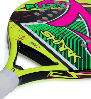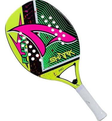 A Shark é outra marca super tradicional no Beach Tennis. O modelo Fury, com foco em fibra de vidro, é conhecido por entregar um excelente equilíbrio entre controle e um peso confortável.
