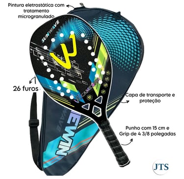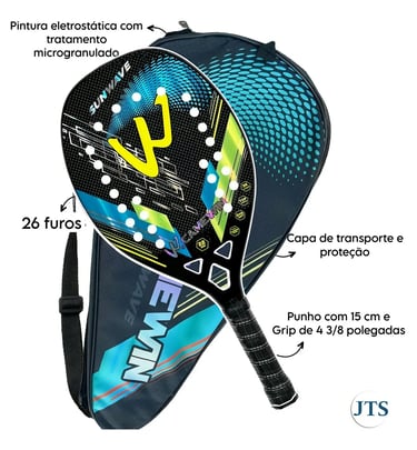 Por quê? Os furos diminuem a resistência do ar. Isso faz com que a raquete fique mais leve e rápida no manuseio. Para quem está aprendendo o movimento rápido, é uma mão na roda.